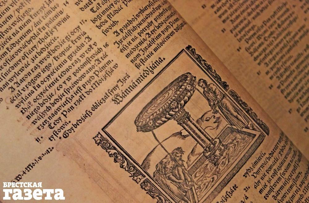 Факсимильное издание Брестской Библии представили публике в Брестской центральной городской библиотеке 24 сентября. Самая большая книга в истории отечественной печати весит 15 кг и насчитывает более 1 400 страниц. Кожа, металлические заклепки, два титульных листа, гравюры – это все о ней. Воссозданы все особенности оригинала: размер, характер печати, бумага, рукописные надписи и пометки на страницах книги. Полностью вручную был выполнен специальный переплет.