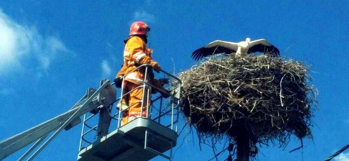 О том, что в деревне Городец требуется помощь аисту, на прошлой неделе в центр оперативного управления Столинского РОЧС сообщили местные жители.
