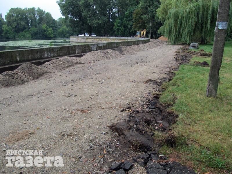 В этом году план-минимум — строительство фонтана и прокладка дорожек вдоль парапета. Сейчас на объекте ведутся подготовительные работы: сняты плитка и старый асфальт. И хотя пока строители «разогнали» многих посетителей, скоро любители прогулок смогут вернуться на берег Мухавца, но уже более комфортный и ухоженный.