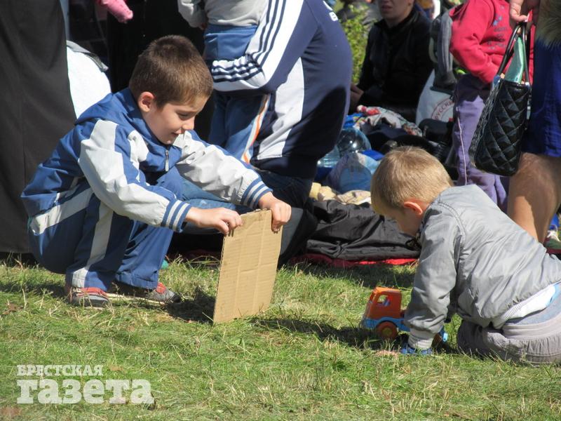 В это время некоторые дети спят на покрывалах, постеленных прямо на землю. Под головой рюкзаки. Рядом бегают другие дети. Взрослые стоят группами, о чем-то разговаривают. Некоторые женщины плачут. Обращает на себя внимание то, что многие находящиеся в лагере, закрывают свои лица, в том числе мужчины. Некоторые из них при приближении корреспондента заявляют: «Мы не говорим по-русски».