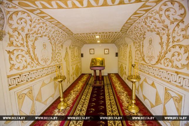 Внутри полевая часовня расписана вручную, ее оформлением занимаются иконописцы. Они уже нанесли на стены лики и образы святых. Мастерам осталось разнообразить цветовую палитру. Объект уникален еще и тем, что там хранится старинная икона XVI века в честь пророка Ильи, который является покровителем всех десантников.