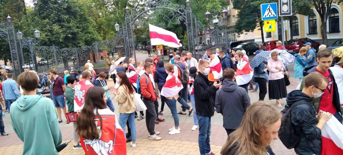 В воскресенье днем 6 сентября в Бресте вновь собрались люди на мирную акцию протеста. Точкой сбора стал памятник 1000-летию, расположенный на улице Советской.