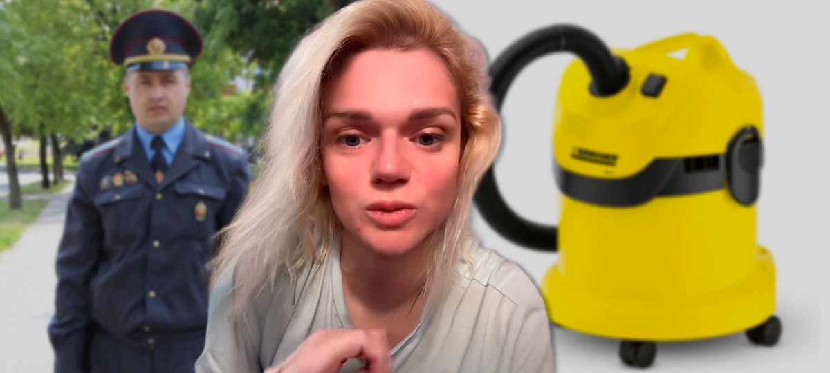 Девушка, Керхер, пылесос, мент