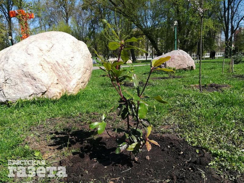 Число деревьев и кустов, высаженных во время акции, совпало с датой выпуска номера — их 13. Теперь флора городского парка культуры и отдыха стала богаче на две сизые ели, два рододендрона (родика — как их ласково называют в питомнике, откуда они родом), пять магнолий (два дерева и три куста) и четыре кустовые сосны.