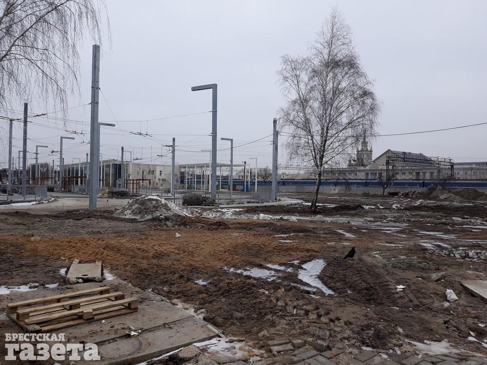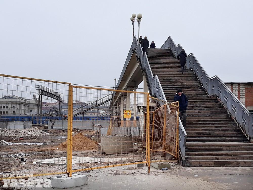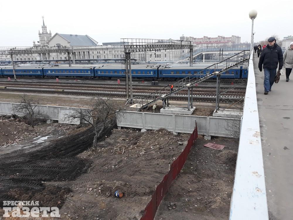 Под строительство будущего центра притяжения брестчан и гостей города уже расчистили площадку рядом с автовокзалом, убрав все, что там было раньше: объект общепита и торговые павильоны. Затронут изменения и старый пешеходный мост. Его укоротят на 100 метров со стороны автовокзала. Сейчас там как раз монтируют временный дополнительный спуск с моста.
