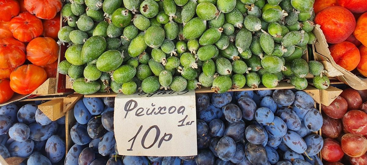 Снова, спустя год, появился и такой полезный фрукт как фейхоа. Его доставляют в Беларусь из Абхазии. Килограмм стоит 10 рублей. Сезон у него очень короткий, поэтому купить его можно всего один месяц в году. Те, кто знает о пользе этого фрукта, закупают его впрок.