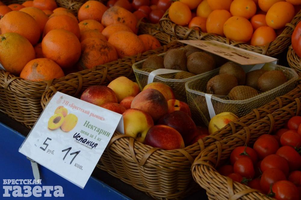 Не меняется цена на яблоки (1,34 – 1,70 рубля), апельсины (2,39 – 5) и лимоны (около 4,50). Килограмм груш можно купить от 1,83 рубля. Бананы на рынке продают по 2,50. Мандарины — 3,15 — 4 рубля. Цены на киви колеблются от 5 до 20 рублей в зависимости от сорта.