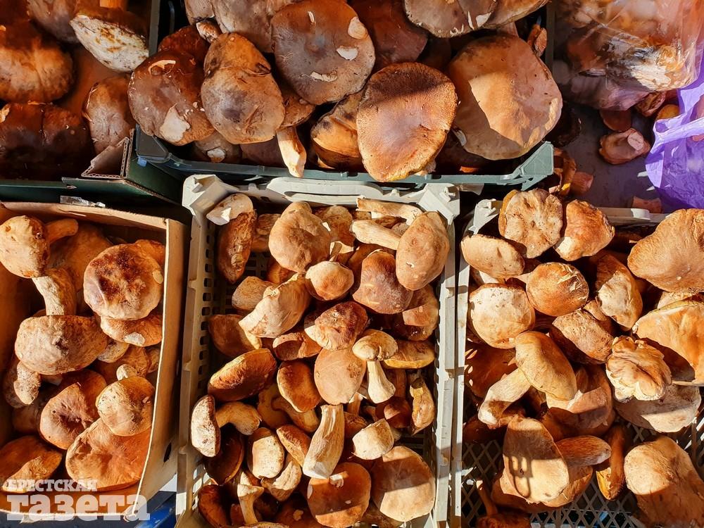 Есть еще на рынке немало грибов, хотя, говорят продавцы, их сезон уже проходит. В ассортименте – белые, зеленки, краснюки, польские и грузди. Цены можете увидеть в таблице ниже.