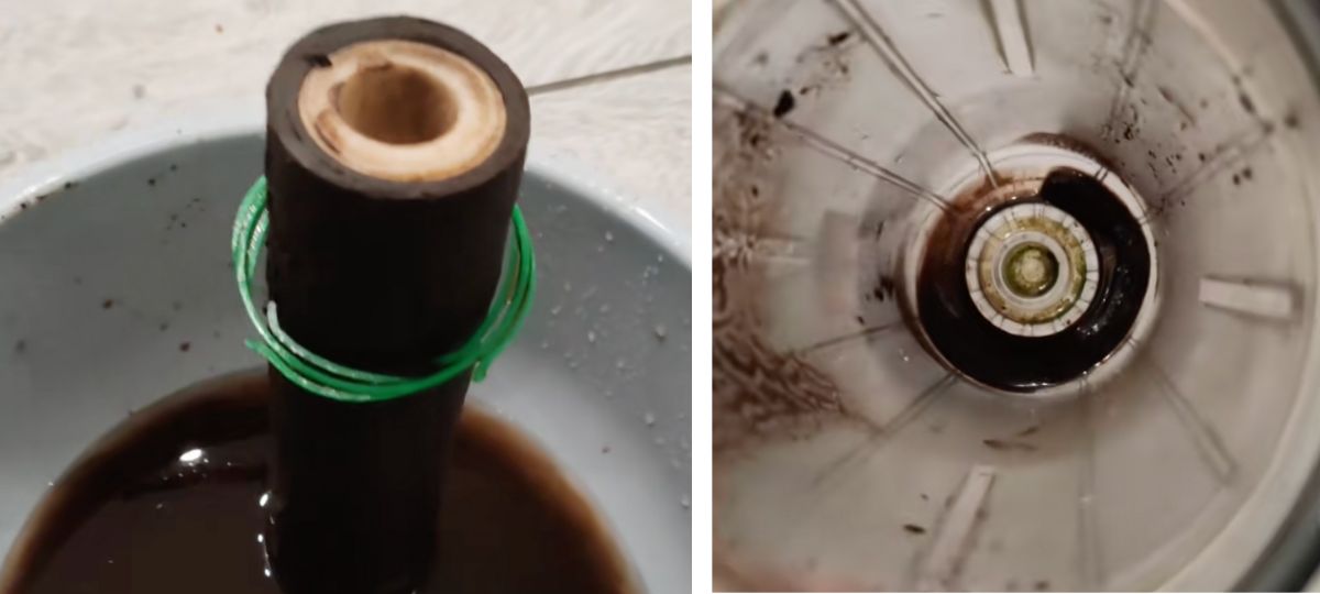 «Фильтр менялся неделю назад. Вот какая водичка. Чистенькая, родниковая, артезианская скважина. Все как положено», — с горькой иронией говорит автор видео, показывая почти черный фильтр, который простоял всего неделю.