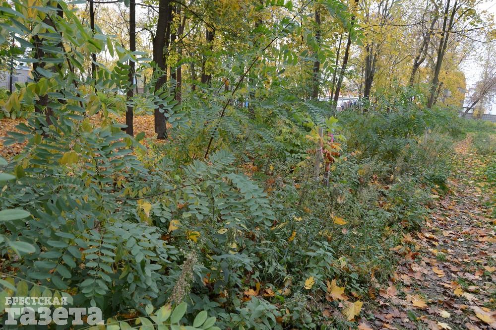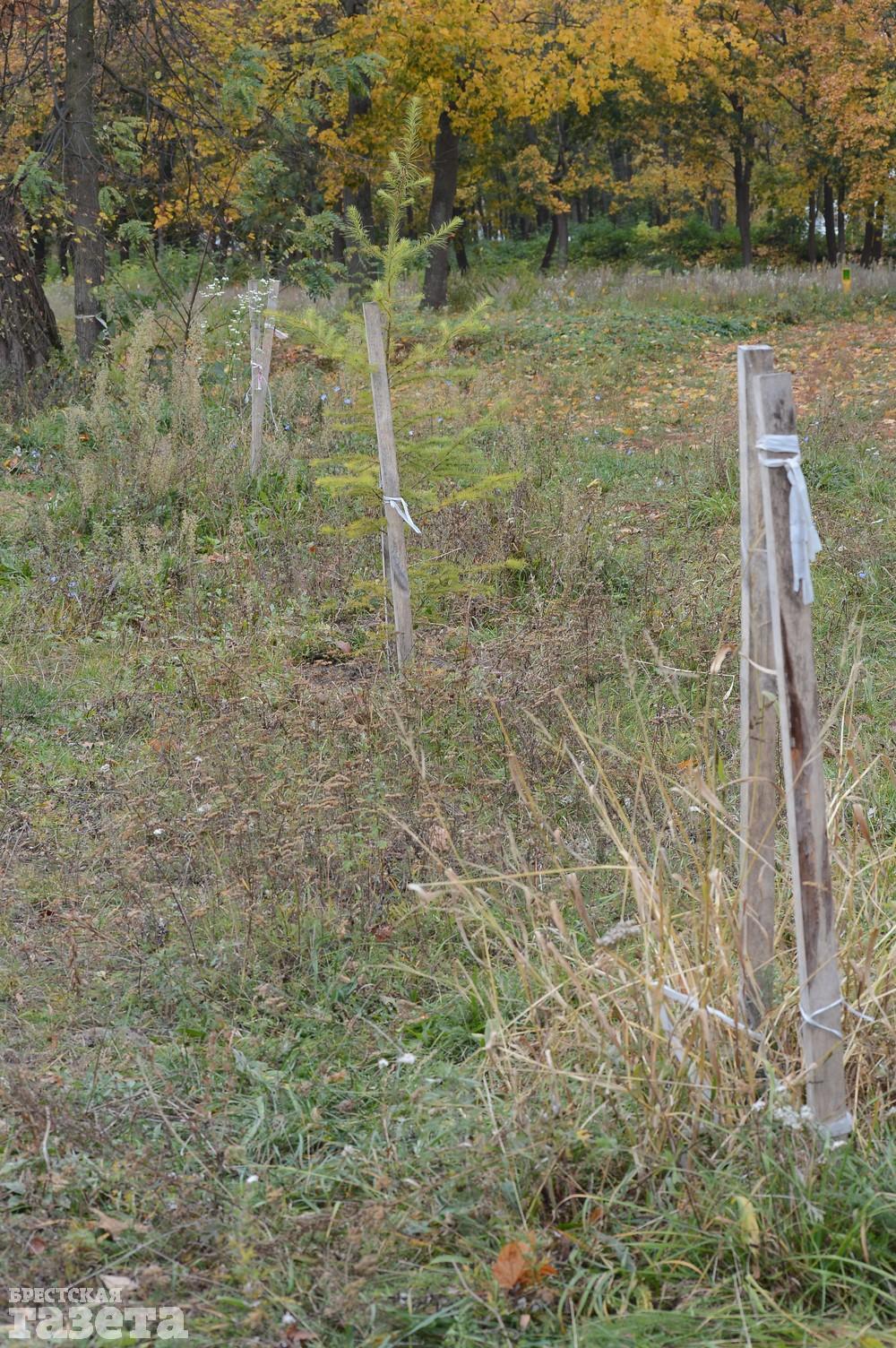 Спустя год, 22 октября, корреспондент «БГ» решила посмотреть, как поживают молодые деревья. Только вот из-за разросшегося кустарника, травы и крапивы не сразу обнаружила аллею многодетных. Если бы не деревянные подпорки для саженцев и ленточки, которые вешали семьи по количеству детей, аллея и вовсе осталась бы незамеченной. Некоторые деревца из-за окутавшей их акации высохли, на месте других и вовсе остались лишь деревянные палки.