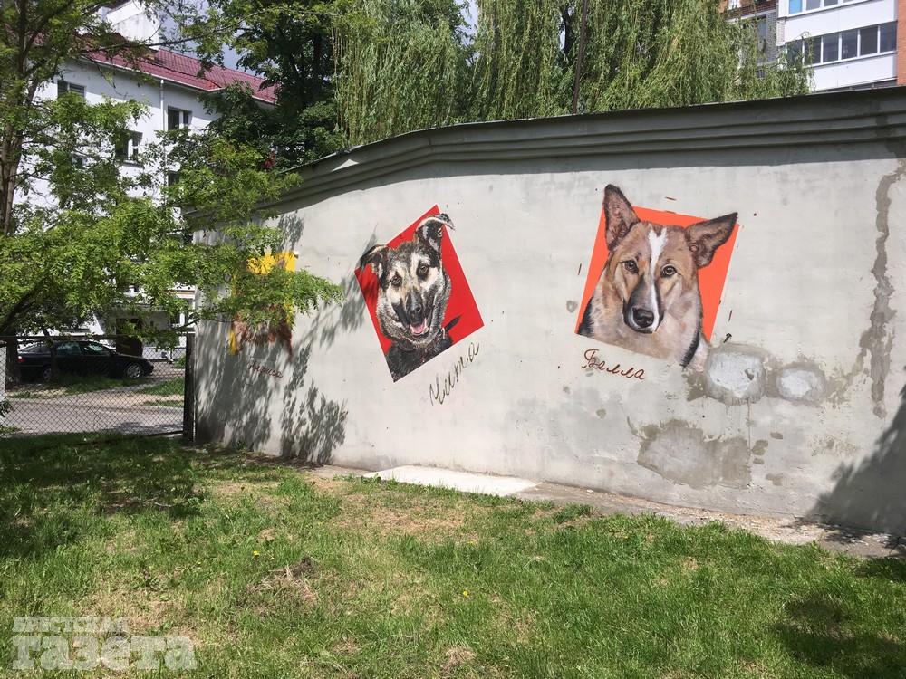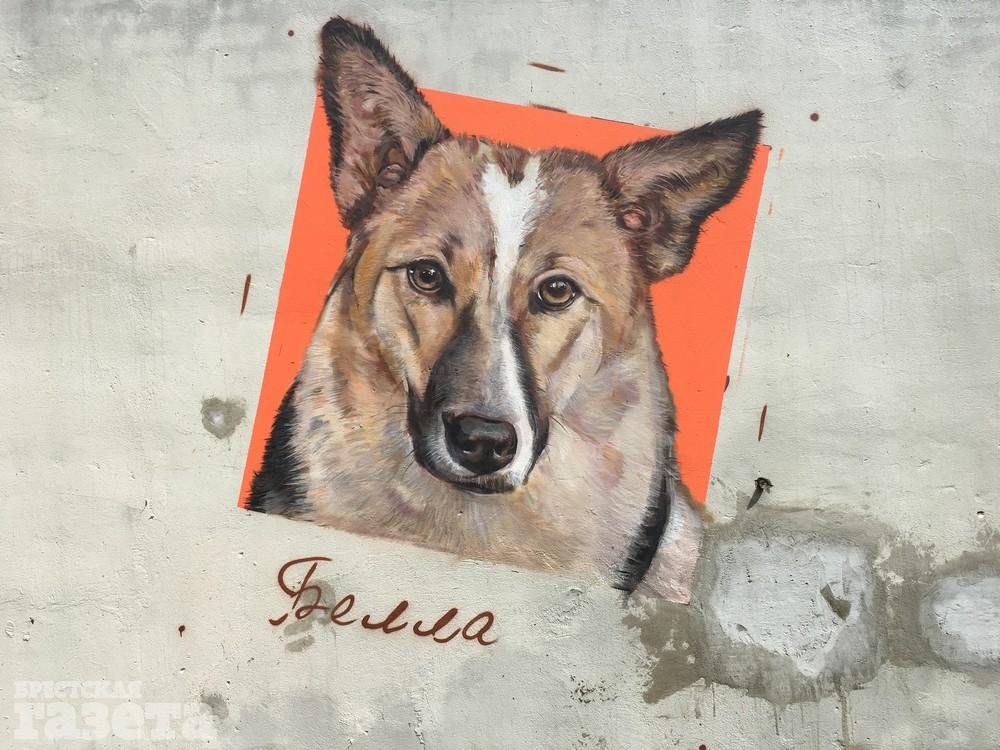 В центре Бреста появился стрит-арт с изображениями животных, спасенных от смерти. Его героями стали кошка Анфиса, собаки Чита и Белла.