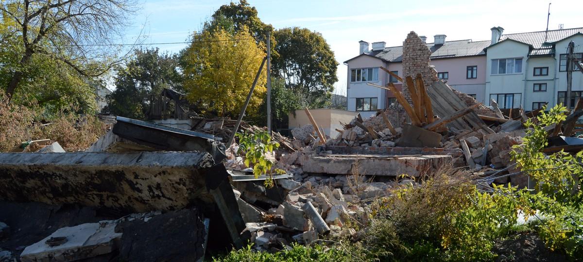 Работы по сносу начались не сразу. Однако на этой неделе двухэтажный сарай начали сносить, и уже 9 октября от него осталась лишь груда кирпичей и досок.