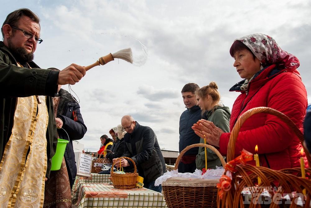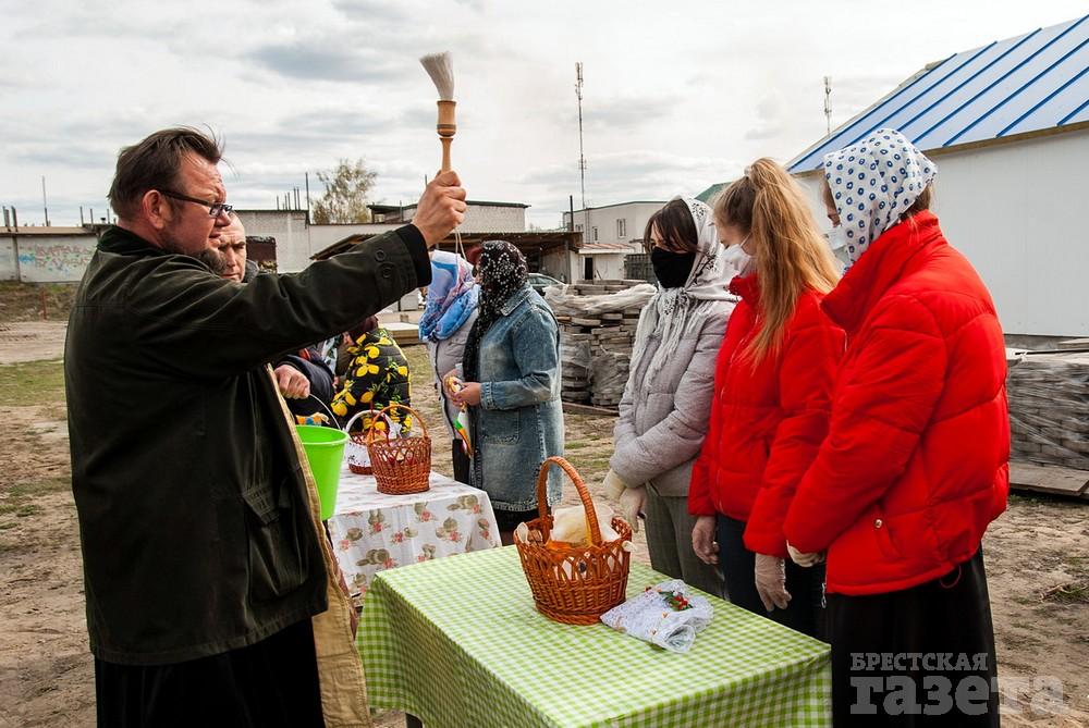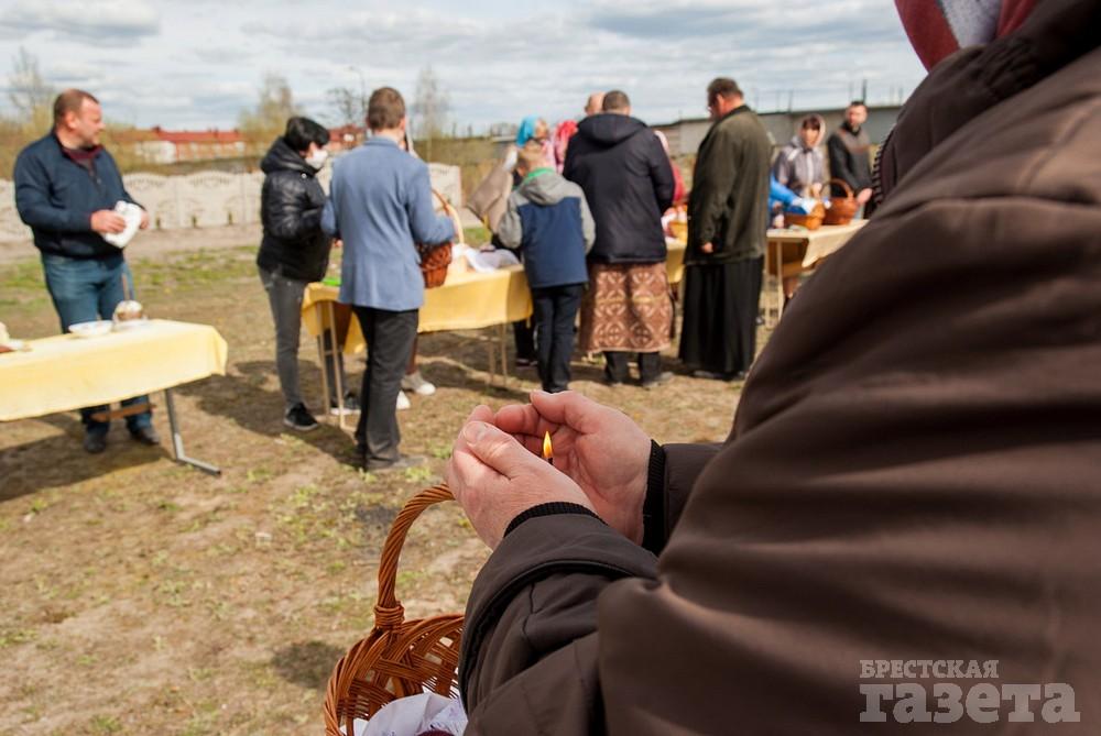 Некоторые брестчане не изменили своей традиции и, несмотря на рекомендации остаться дома, пришли в храм освящать куличи в субботу накануне Пасхи.