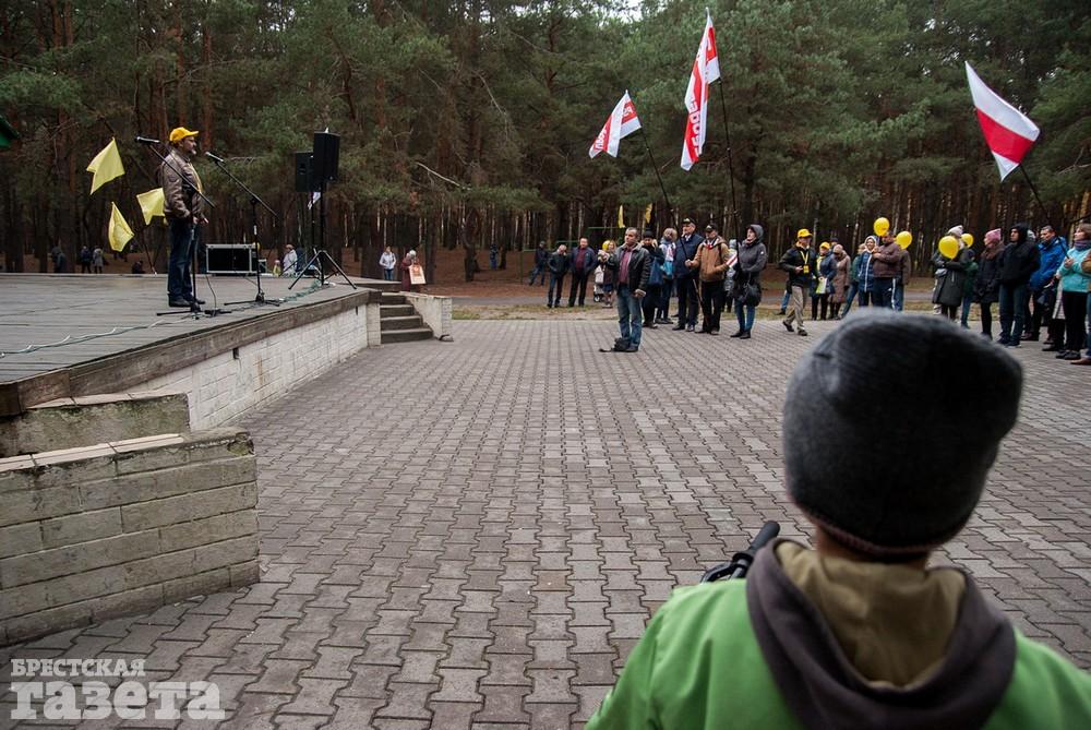 Митинг начался в полдень воскресенья 10 ноября с песни «Жить» на музыку композитора Игоря Матвиенко с народным текстом против строительства аккумуляторного завода под Брестом.