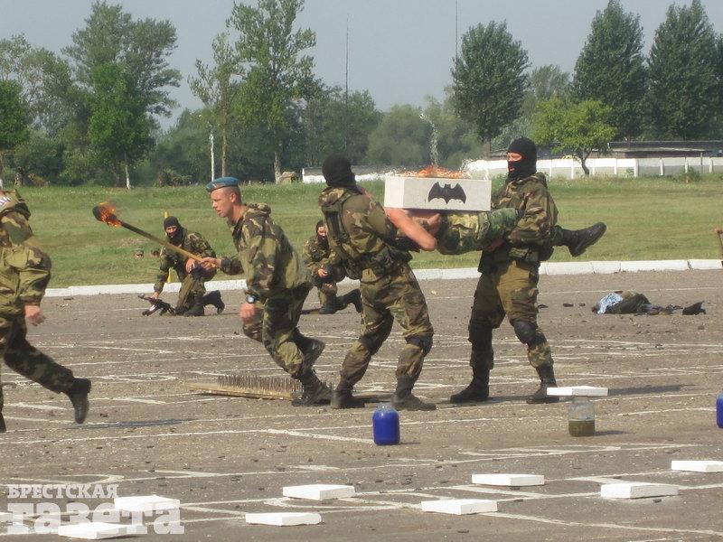 Праздничные мероприятия проходили утром 2 августа в 38-й отдельной гвардейской Венской Краснознаменной десантно-штурмовой бригаде. Десантники представили зрителям шоу с боевыми эпизодами: взрывами, стрельбой из автоматов и зениток, прыжками с парашютом. Также подготовленные бойцы лежали на гвоздях, десантировались из вертолета с небольшой высоты и показали «вальс зениток», в котором кроме девушек в красивых платьях «танцевала» и военная техника.