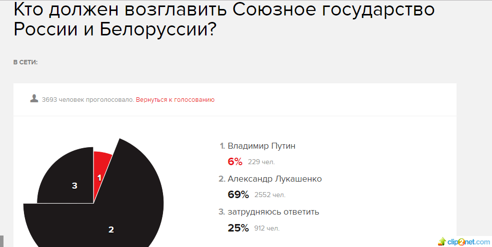 На 21.15 четверга 3 января на вопрос радио «Эхо Москвы» «Кто должен возглавить Союзное государство России и Беларуси?» в сети ответило 3 562 человека. Еще 100 человек проголосовали по телефону.