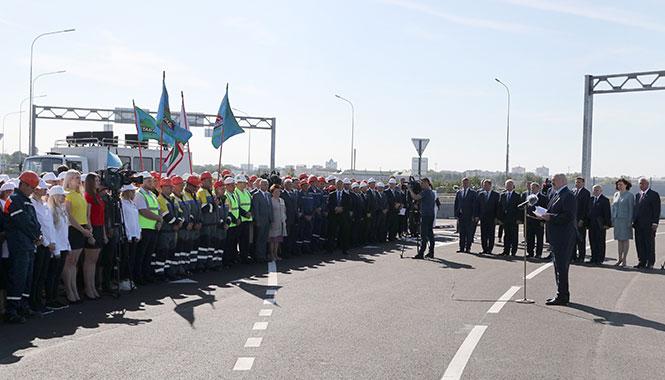 «Это не просто дорога. Это здоровье жителей Бреста. Мы убираем огромные потоки транспортных средств из города и направляем их в обход. Вы не только выполнили поручение, а сдержали свое слово — построили путепровод, который связал берега реки Мухавец, погранпереходы «Варшавский мост» и «Козловичи», — отметил Александр Лукашенко 6 сентября во время торжественного открытия второй очереди Западного обхода.