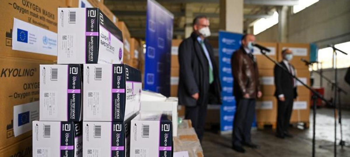 - В апреле 2021-го в рамках проекта «Солидарность во имя здоровья», финансируемого ЕС, страновой офис ВОЗ доставил в Минск кислородные маски с резервуаром, аппараты для высокопотоковой назальной оксигенотерапии, экспресс-тесты для диагностики COVID-19 на общую сумму 850 тыс. долларов США. Как отметил на церемонии передачи груза глава представительства Европейского союза в Беларуси Дирк Шубель, «оказание помощи Беларуси будет продолжено, а суммарный объем поставленного в республику оборудования уже составил 5,3 миллиона долларов».