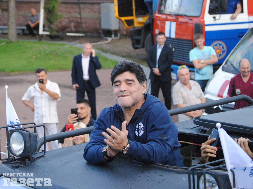 Легенда мирового футбола Диего Марадона посетил Брест впервые. И если от аэропорта Брест до гостиницы «Эрмитаж» он доехал на голубом «Мерседесе», то на стадион СК «Брестский» он въехал на машине, которую некоторые пользователи в соцсетях успели назвать и танком, и броневиком.