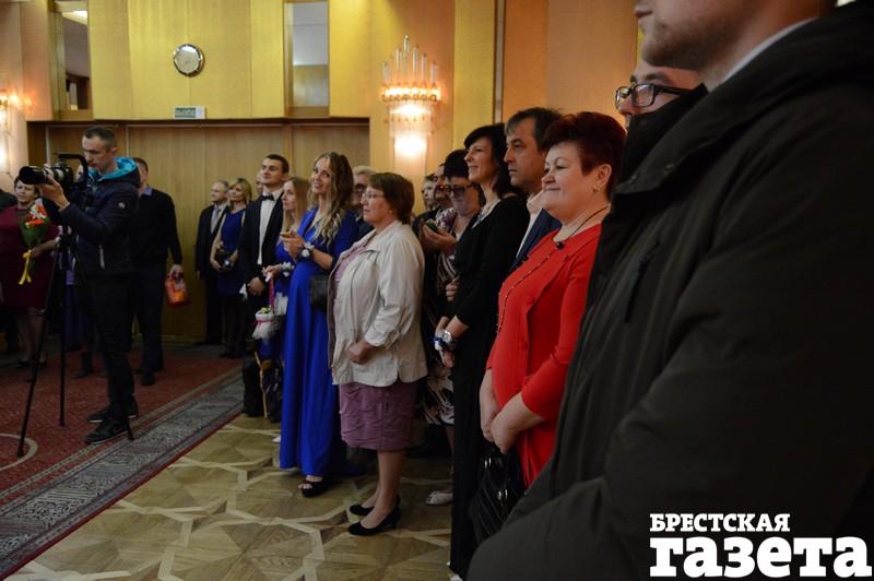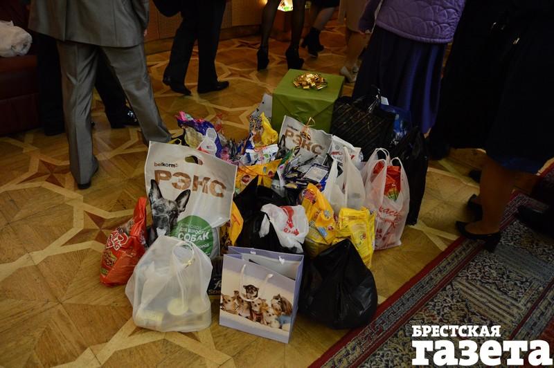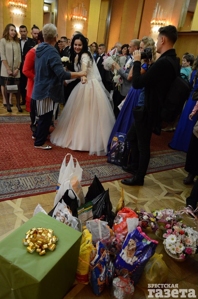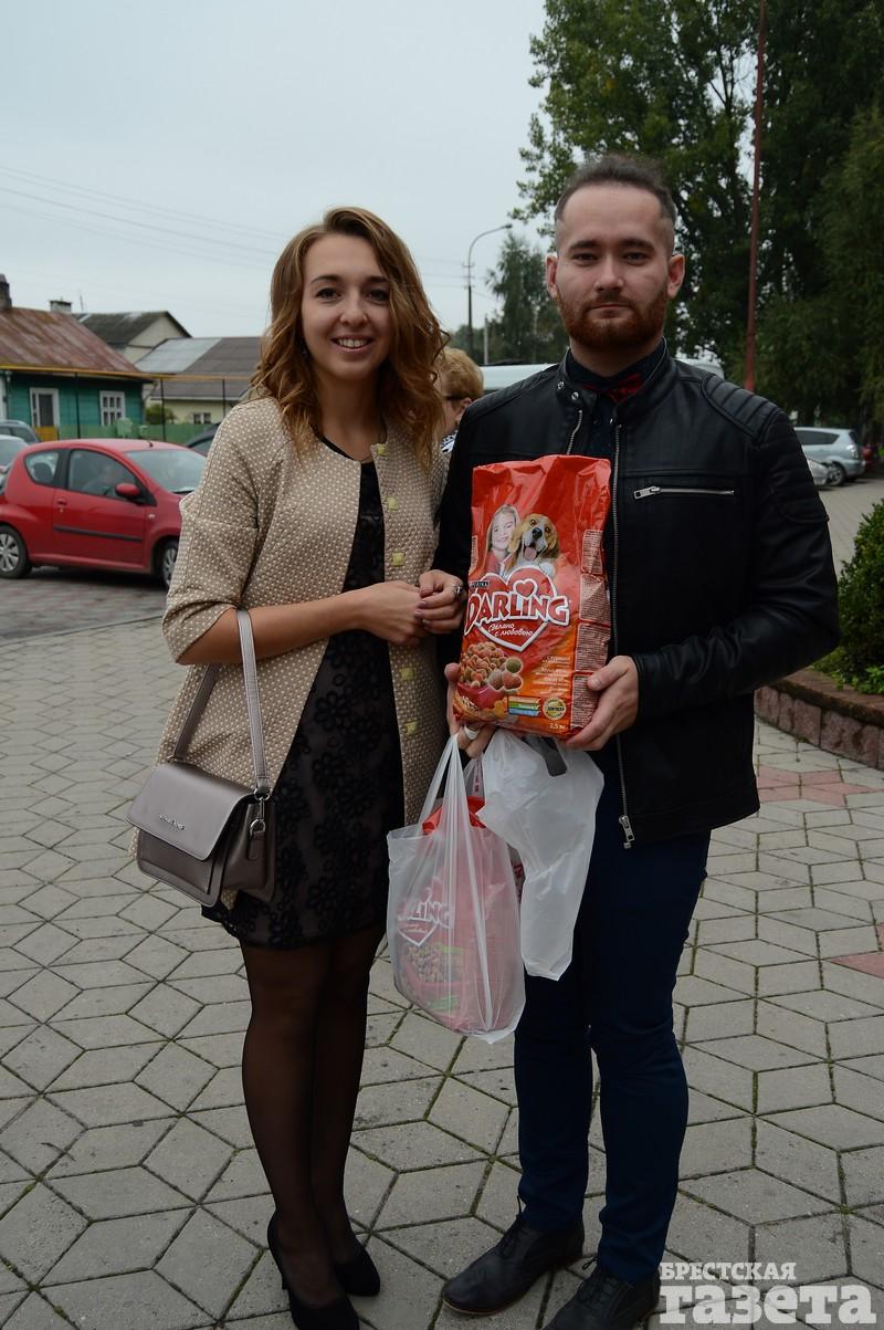 В пятницу 22 сентября в Доме гражданских обрядов в Бресте состоялось бракосочетание Екатерины Василюк и Александра Ажаева. Многие гости принесли в ЗАГС корм для котов и собак. Не обошлось и без цветов. Были гости, которые несли и корм, и букет.