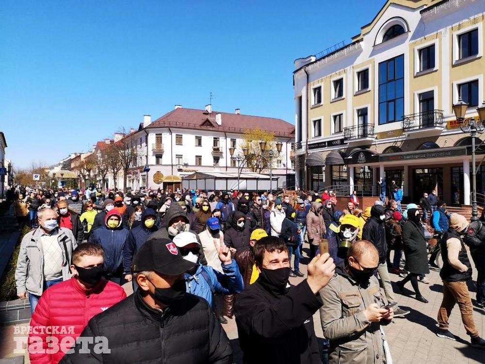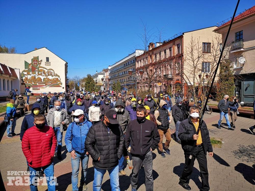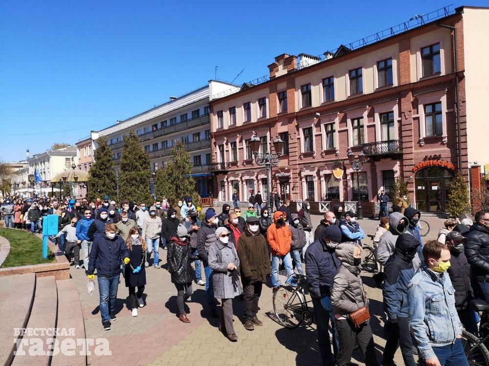 После акции протеста на площади ее участники пошли по центральным улицам Бреста до ЦУМа. Они скандировали лозунги: «Нет заводу АКБ», «Свободу активистам», «Чиновников на нары», «Геноцид не пройдет», «Лукашенко, уходи» и другие.