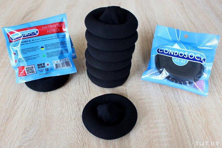 Продукту дали название «кондосок» (от англ. condom — презерватив и sock — носок), пишет tut.by.  Каждый из них свернут в виде бублика и помещен в пластиковую упаковку. На этикетку нанесен QR-код, который ведет на видеоинструкцию о правильном использовании кондосока.