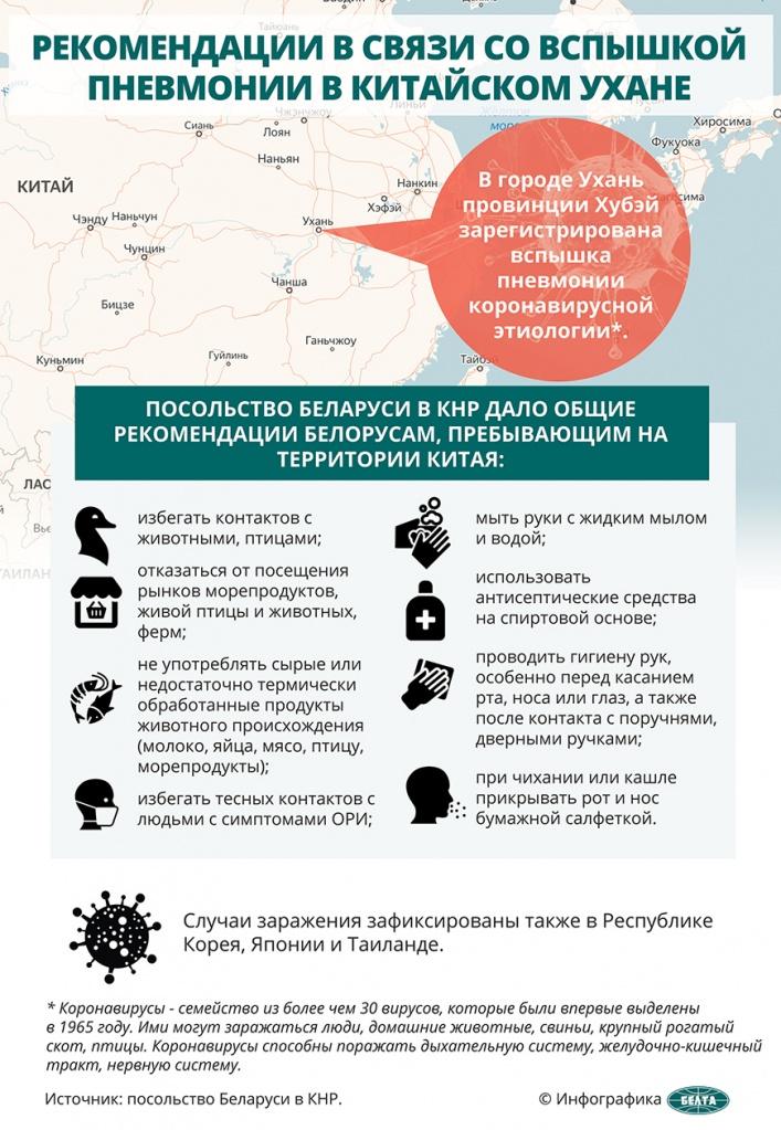 Известно, что ранее вирус 2019-nCoV не передавался людям. Исследователи считают, что, скорее всего, вирус распространился на людей от животных, но способен также передаваться от человека к человеку. Поэтому специалисты советуют не прикасаться к животным, а мясо и яйца подвергать достаточной термообработке. Также следует избегать контакта с людьми с симптомами простуды или гриппа.