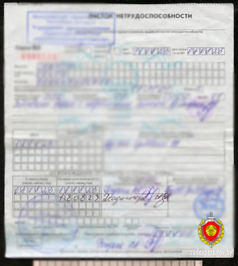 В милицию обратилась мастер ЖЭСа и рассказала, что работница предоставила листок нетрудоспособности с признаками подделки. Документ и образцы почерка для сравнительного исследования направили в Брестский межрайонный отдел ГКСЭ. Почерковедческая экспертиза показала, что цифровая запись в листке нетрудоспособности выполнена сотрудницей ЖЭСа, как и подпись от имени вымышленного лица.