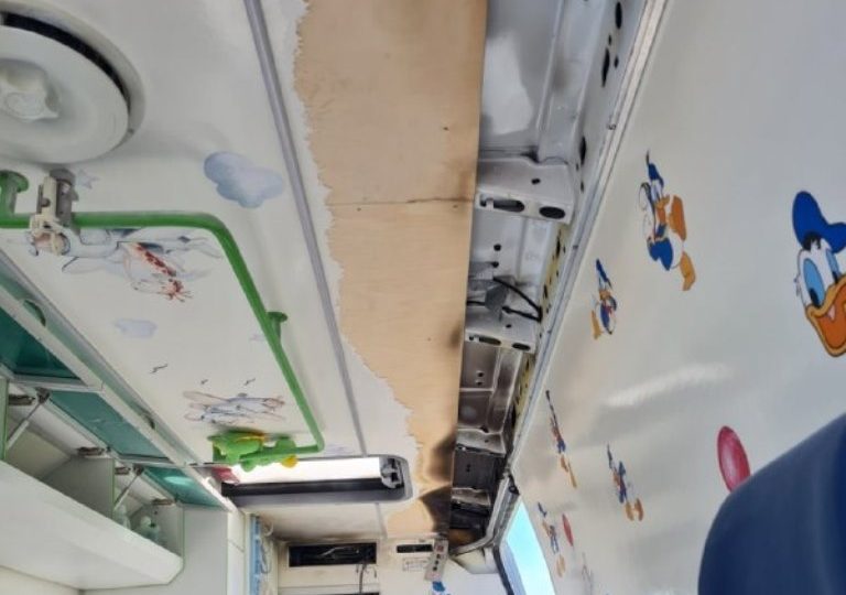 В результате случившегося повреждена обшивка салона, лакокрасочное покрытие кузова, светоакустическая панель сигнального громкоговорящего устройства. Никто не пострадал.