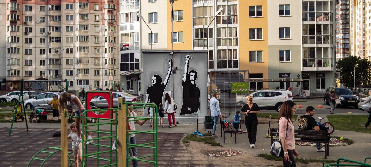 Вечером 11 ноября во «двор перемен» на улице Червякова в Минске приехали люди в масках. Они срезали БЧБ-ленты и закрасили мурал на трансформаторной будке. Позже МВД назовет их «небезразличными гражданами».