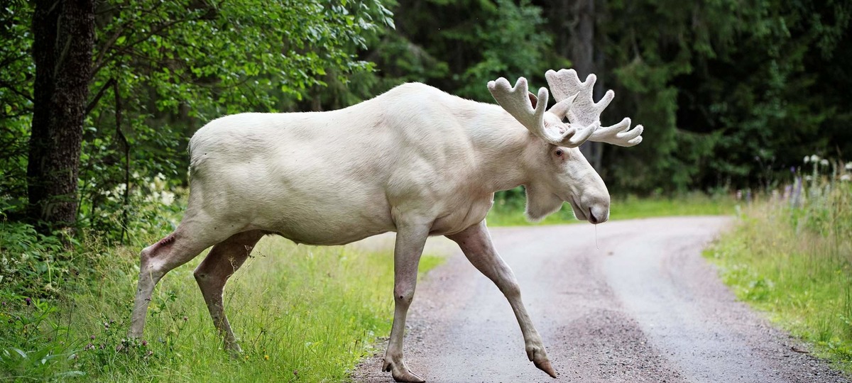 В Беловежской пуще в объектив фотоловушки «попался» олень-альбинос. Альбинизм — это врожденная и редкая мутация. В природе он бывает как полный, так и частичный. При полном альбинизме у животных бледная кожа, белая шерсть и красные глаза.