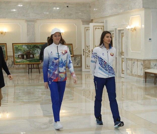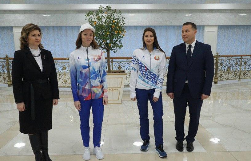 Представили базовые комплекты главе государства пловчиха Александра Герасименя и гимнастка Ксения Санкович. Один из вариантов выполнен в бело-синих тонах с использованием орнаментов и узоров, второй – в бело-красных. По информации БелТА, форму разработали отечественные предприятия «Соло-Пинск» и «Свiтанак».