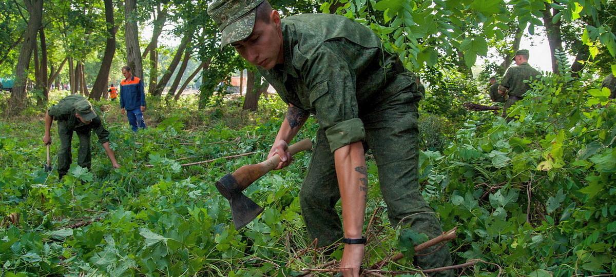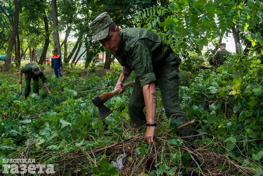 На нее вышли работники служб ЖКХ, которые занимаются реконструкцией этой территории, а также военнослужащие, БРСМ, горожане.