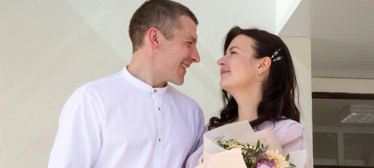 Брестчане Михаил и Ирина Кругликовы познакомились полтора года назад. Он — инженер-проектировщик, она — журналист, редактор отдела новостей «Брестской газеты». Пара расписалась в отделе ЗАГС Брестского горисполкома 1 июня.