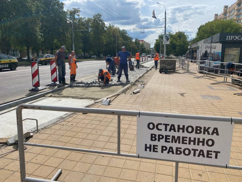 Работы по замене асфальта на брусчатку на остановочных пунктах «Проспект Машерова» (в обе стороны) практически завершены, уже завтра они откроются для общественного транспорта. Об этом сообщает председатель горисполкома Александр Рогачук.