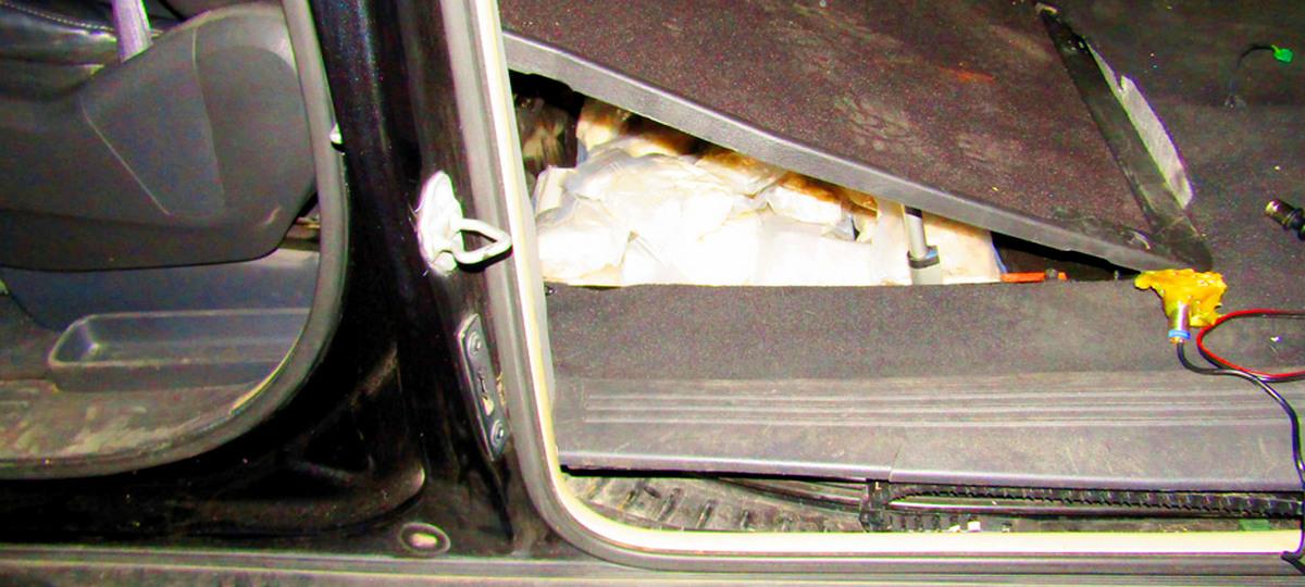 Авто остановили в Жабинковском районе, за рулем был брестчанин. Сыр, телефоны и наушники водитель разместил в конструктивных полостях салона и багажного отделения легковушки, в том числе в дверях, перчаточном ящике, аптечке, внутри сидений.