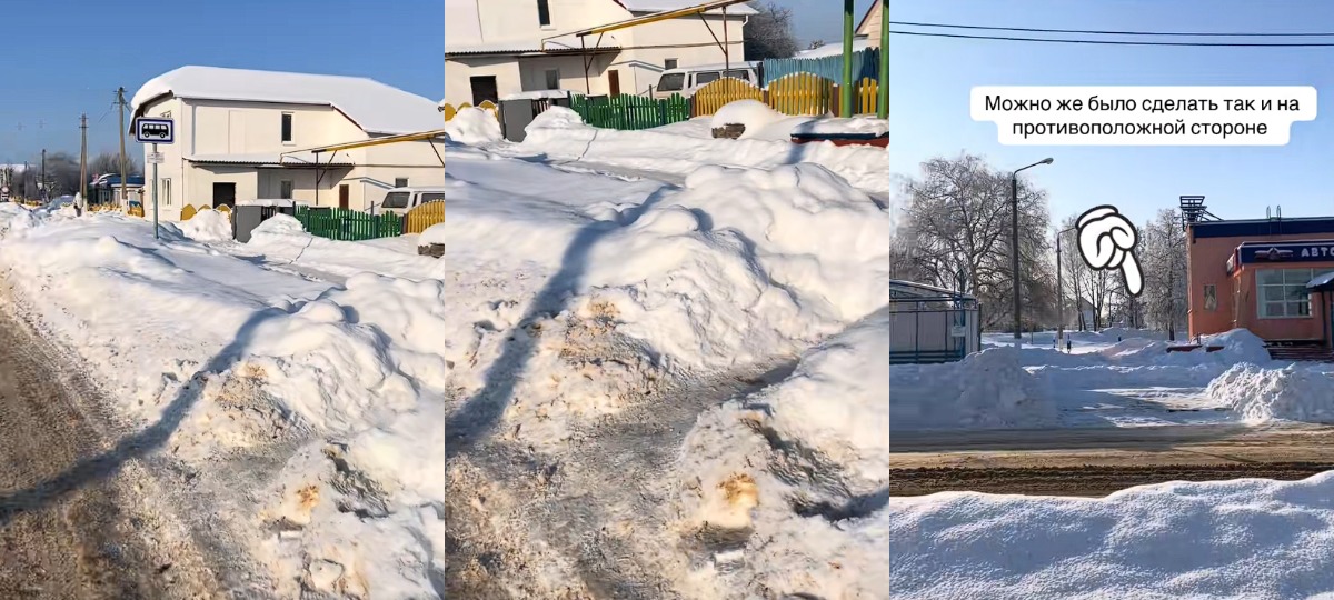 Пры гэтым аўтар роліка звяртае ўвагу на тое, што прыпынак, што месціцца на паралельнай вуліцы, выглядае зусім інакш. Там праход ачышчаны ад снегу і не такі вузкі, як на іншай вуліцы. Але ў каментарах падкрэслілі, што той праход прачысцілі не камунальнікі, а мясцовыя жыхары: «На супрацьлеглым баку расчысціла жанчына, сын якой кожную раніцу садзіцца на аўтобус з гэтага прыпынку», — піша адна карыстальніца.