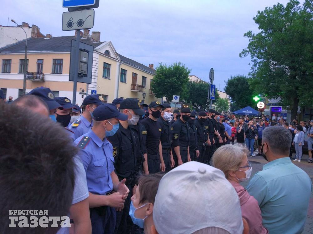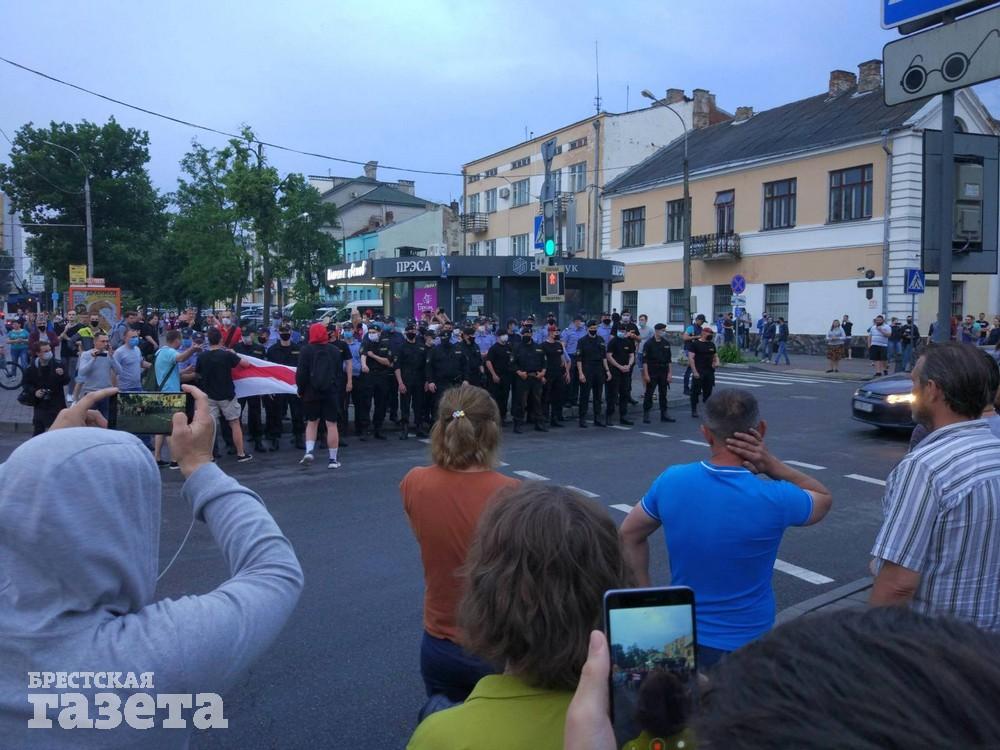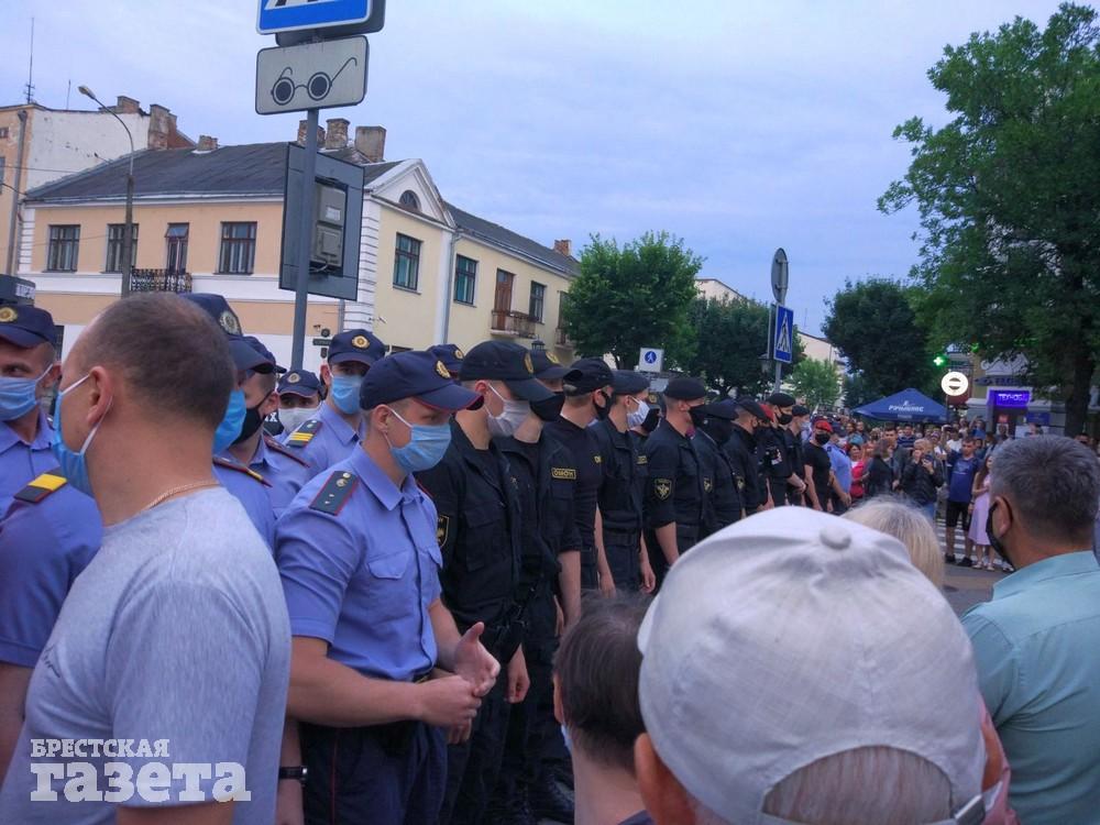 В Бресте проходит акция солидарности. Проспект Машерова заполнен людьми, прибыл ОМОН (фото + видео)