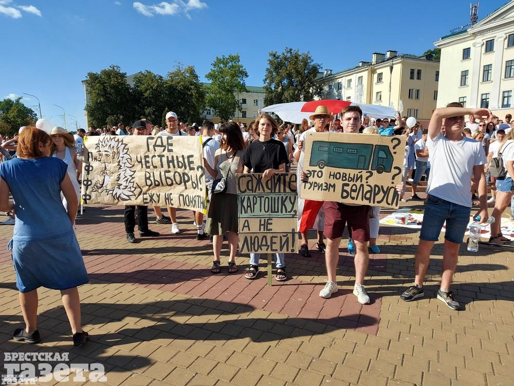 В Бресте 16 августа люди вновь собрались в центре города в знак протеста против официальных итогов выборов.