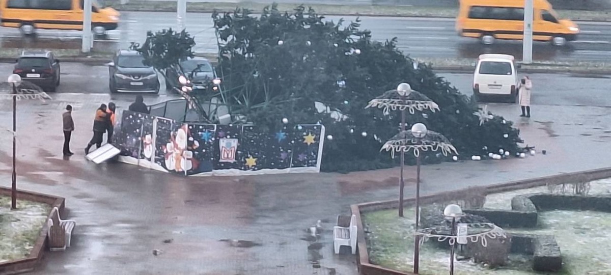 В Бресте ветел сдул новогоднюю елку