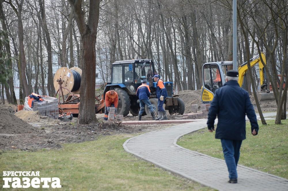 Работники Брестского ДЭПа рассказали «БГ», что им приходится работать сверхурочно, чтобы успеть благоустроить парковую зону к намеченной дате.