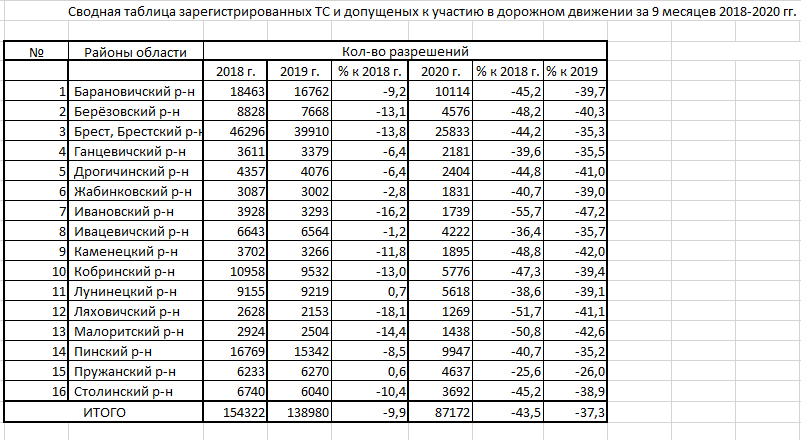 Если сравнивать данные по Бресту с январем-сентябрем 2018 года, то разница еще существеннее — минус 44,2%.