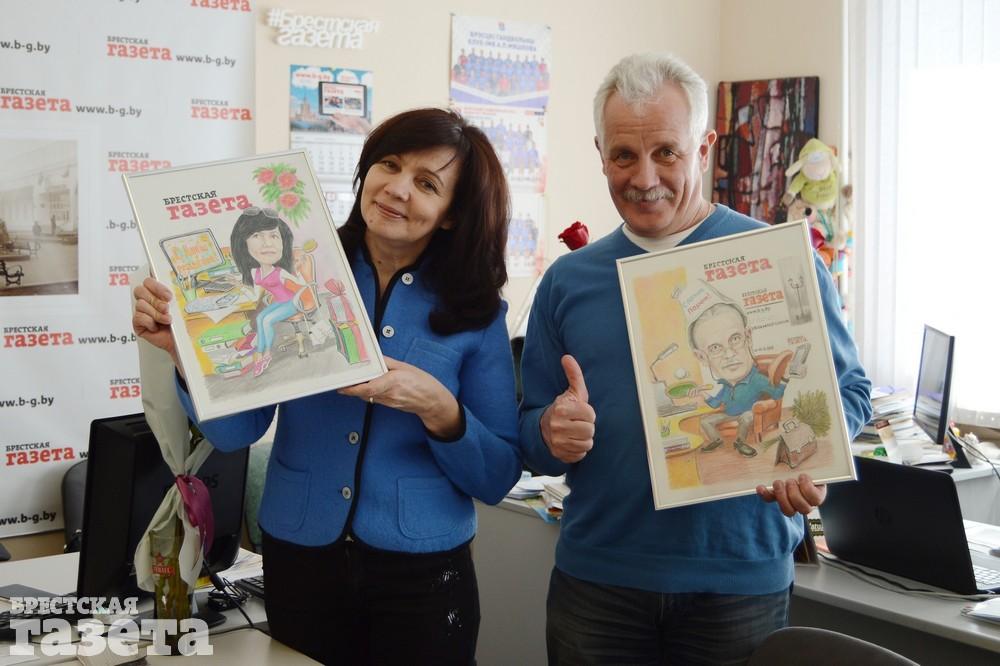 Кстати, Сергей по просьбе команды «БГ» сделал шаржи на нашего главного редактора Виктора Марчука и заместителя директора ООО «Брестской газеты» по рекламе и маркетингу Татьяну Пискур. Они им понравились.