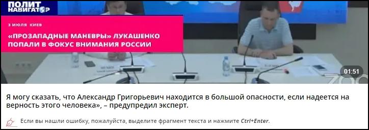 На вопрос, чем это грозит Лукашенко, обозреватель отвечает: «Белоруссия продержалась последние 25 лет благодаря своему прочному союзу с Россией, так как Россия парализовала попытки Запада снести хрупкую белорусскую власть. Сейчас, вытесняя Россию из своего политического пространства, информационного пространства, уходя от союза с Россией, Лукашенко оказывается беззащитным и открытым Западу».