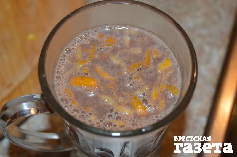 Не доводя до кипения, положите туда поломанный на дольки шоколад, натрите цедру апельсина и всыпьте щепотку мускатного ореха.