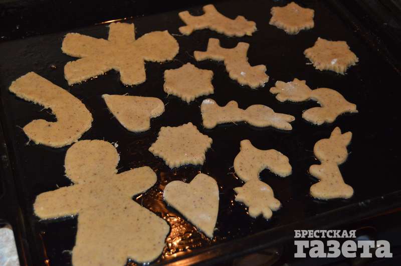 Замесите некрутое тесто. Раскатайте его до толщины 0,5 см. Вырежьте фигурки и выложите их на противень, смазанный маслом. Выпекайте печенье в духовке при температуре 180 градусов около 15 минут.