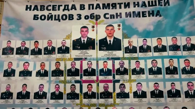 Ознакомившись с фотографиями на стенде, Би-би-си выяснила, что фамилии большинства упомянутых спецназовцев ранее появлялись в СМИ и соцсетях, но без указания места службы. На стенде также были фотографии двух ГРУшников, о чьей гибели ранее не сообщалось публично.