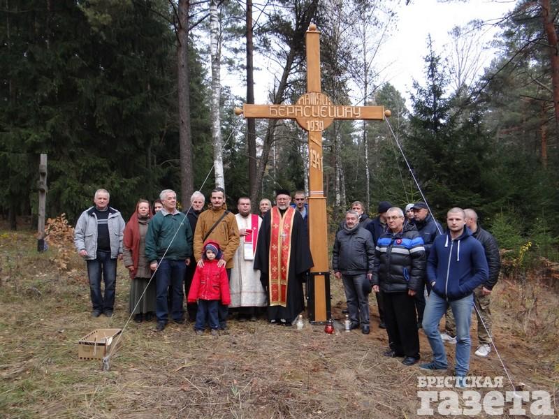Пасля ўстаноўкі крыж асвяціў грэка-каталіцкі святар з Берасця Ігар Кандрацьеў.