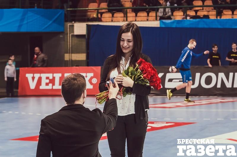 «Получается, о том, что я буду делать предложение своей девушке, уже знали в Европейской федерации гандбола, — рассказал, улыбаясь, Антон. — В субботу 19 марта перед самым матчем у нас (у Антона и сотрудников гандбольного клуба — прим. авт.) была репетиция. Как раз был представитель Европейской федерации. Он меня увидел, спросил на английском, уверен ли я? Я сказал, что да, уверен! Он спросил, а если она скажет «нет»? Я говорю: «Нет» она сказать не может!»