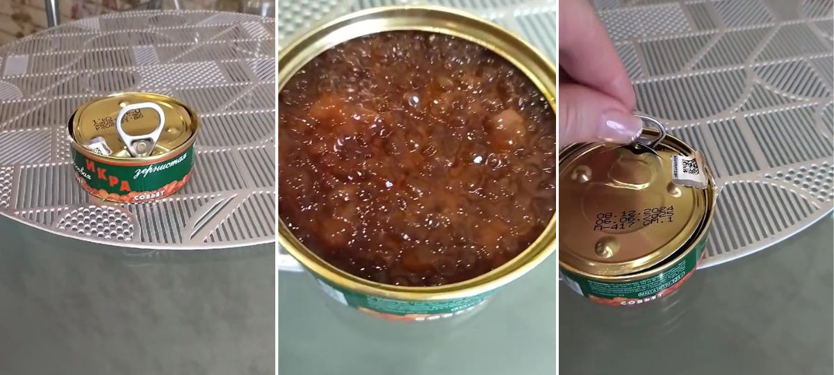 «Это что за чудо такое? Я уже раньше видела ролики по поводу икры, но думала, что это единичные случаи. Это не икра, это коричневое месиво», — продемонстрировала блогерша открытую банку.